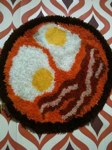 bacon, bizarre, cushions, rugs, steak, unusual, weird